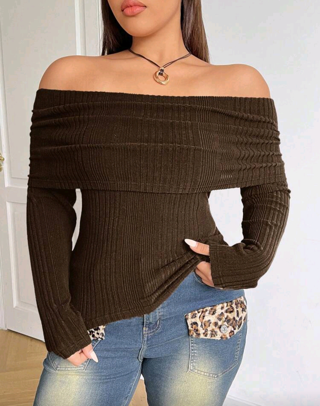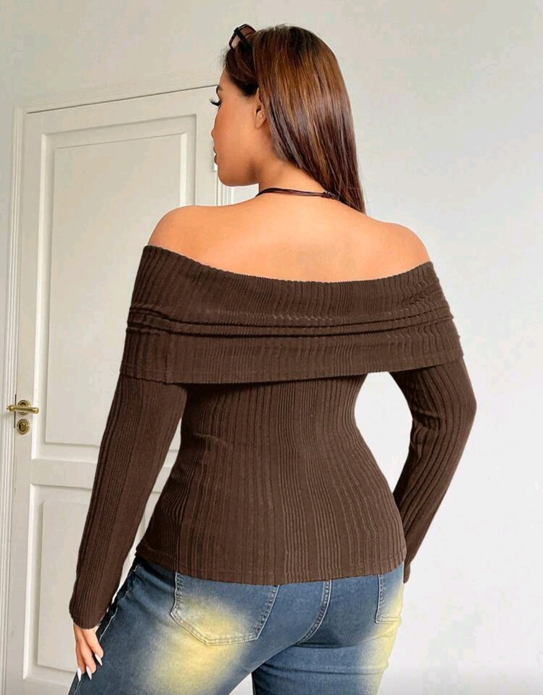 Blusa chocolate cuello bardot 3 XL