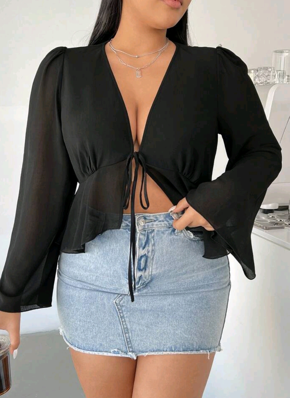 Blusa negra con volados 4 XL