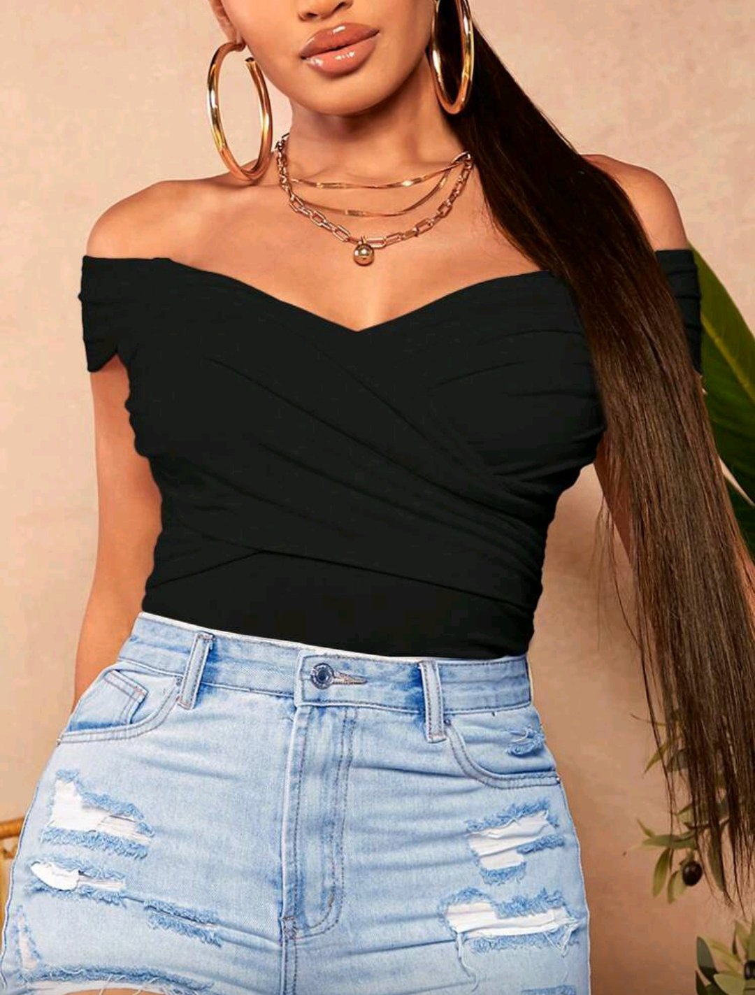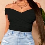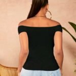El diseño de hombros descubiertos y la torsión en el frente marcan la cintura, estilizan tu figura y suman detalle sin perder naturalidad.