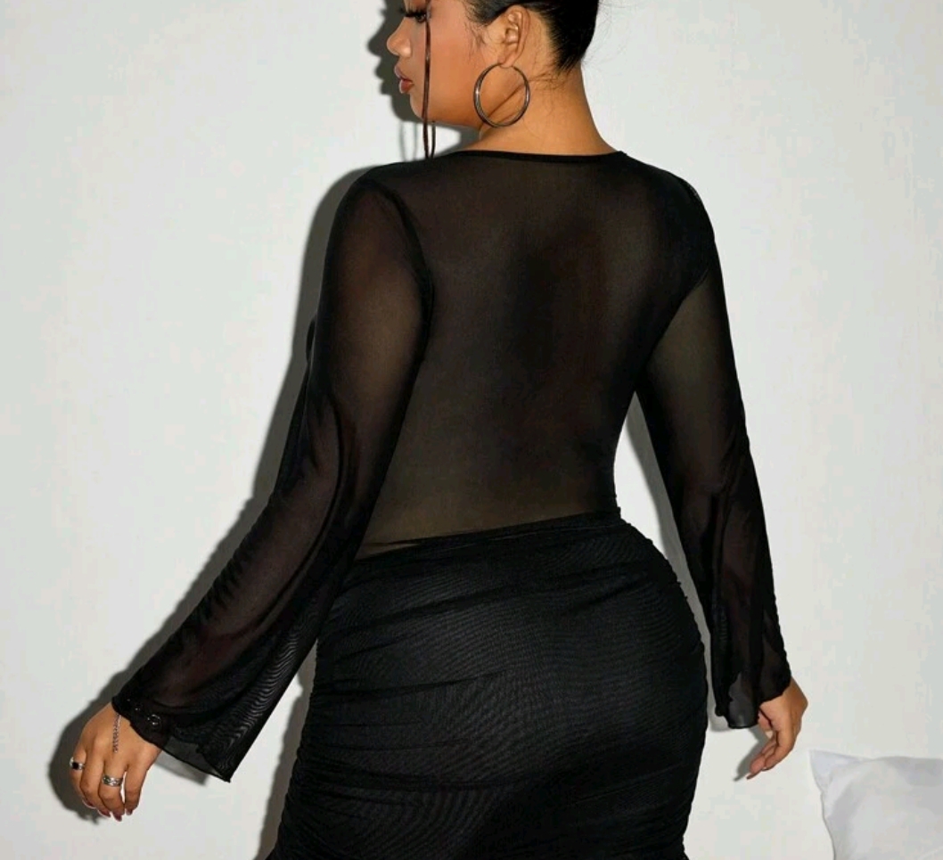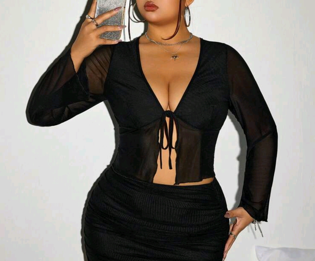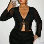 Blusa traslúcida de atar 4 XL