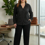 Camisa negra plisada XXXL