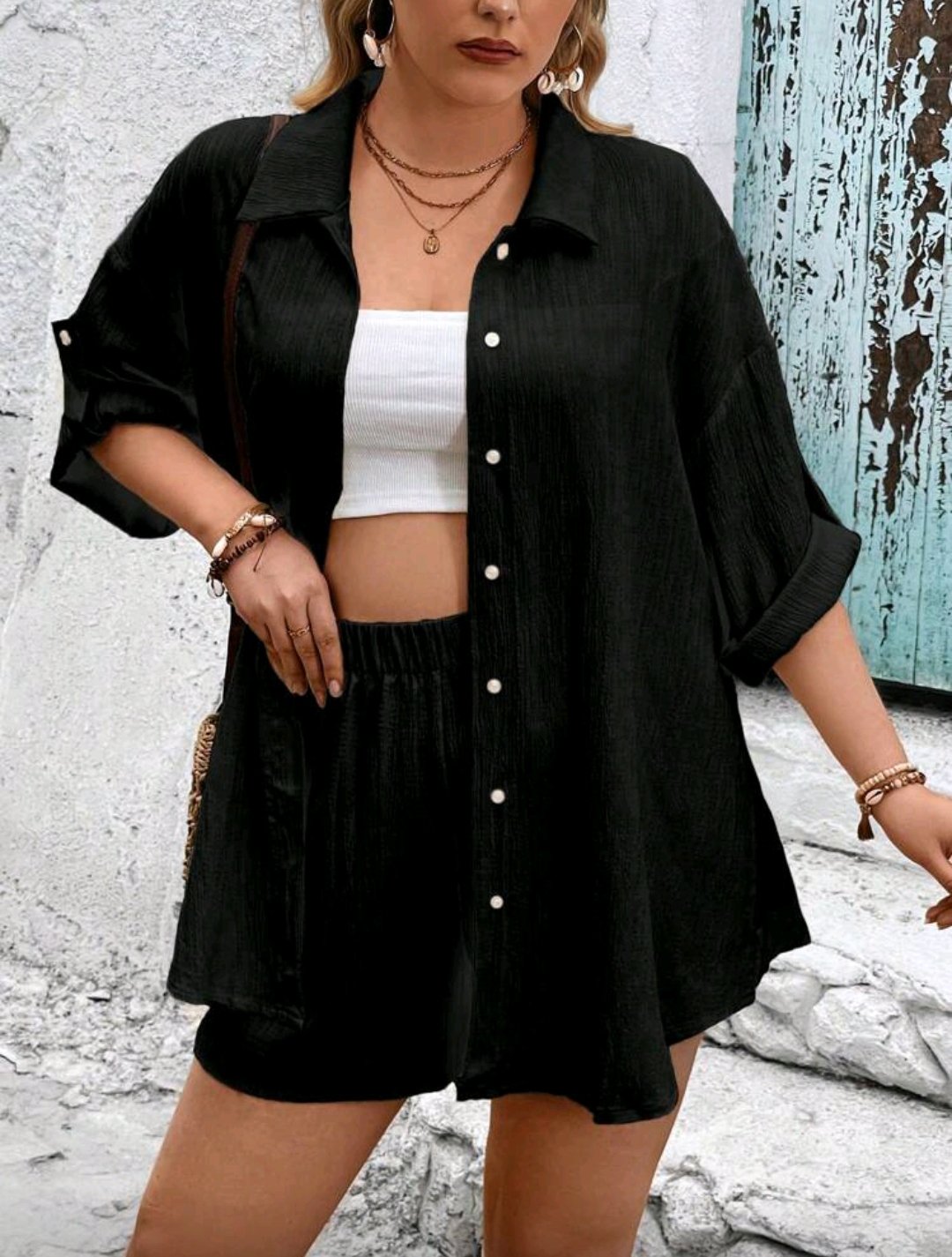 Estilo XL pensado para vos: el short ofrece libertad de movimiento y practicidad, mientras que la camisa suma ese detalle moderno que realza tu figura sin perder comodidad.