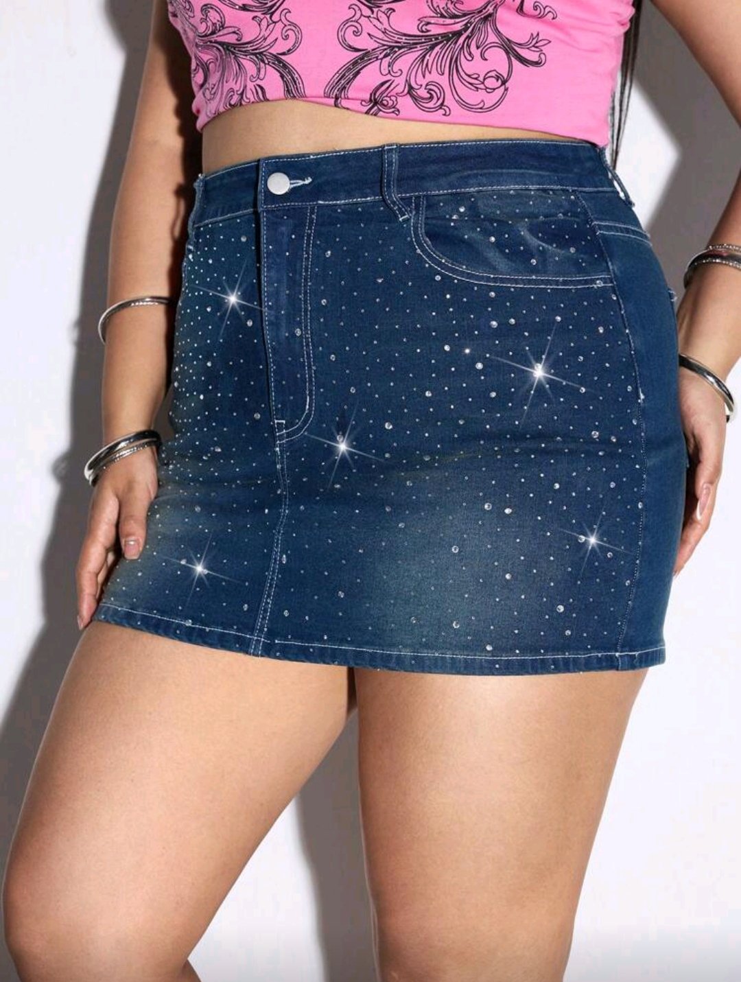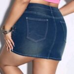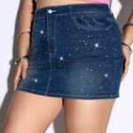 El diseño en tela vaquera y estilo mini marca carácter, mientras la silueta alta en la cintura estiliza y define.