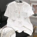 Remera blanca con brillos y perlas 5 XL